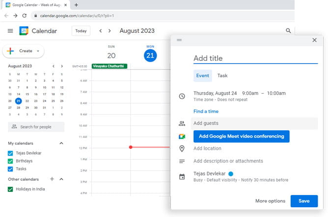 | Gmail and Calendar | ![]() | ![]() | ![]() | ![]() | ![]() |